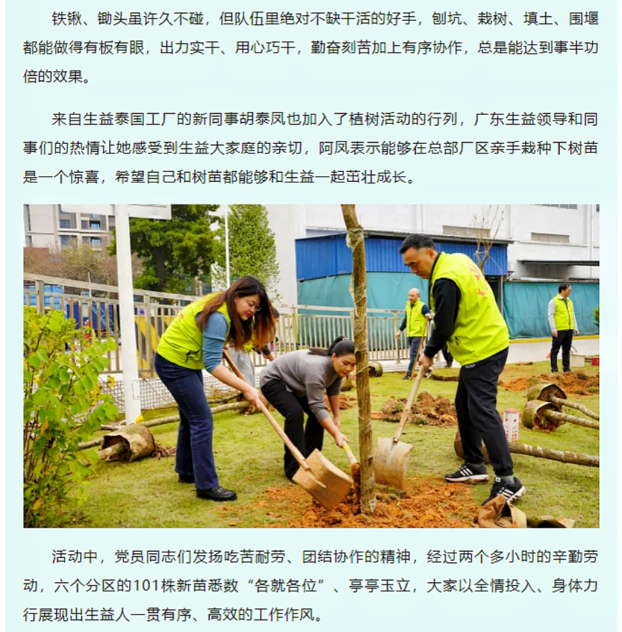 党员植树做先锋 美化厂区展新颜——必一运动党员志愿者、管理人员植树活动