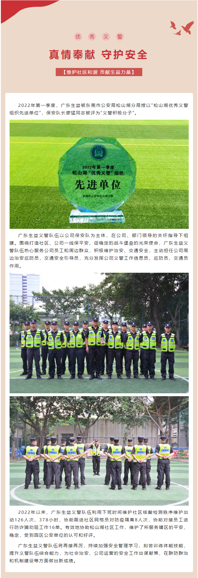 真情奉献 守护安全——广东必一运动官网荣获“松山湖优秀义警组织先进单位”