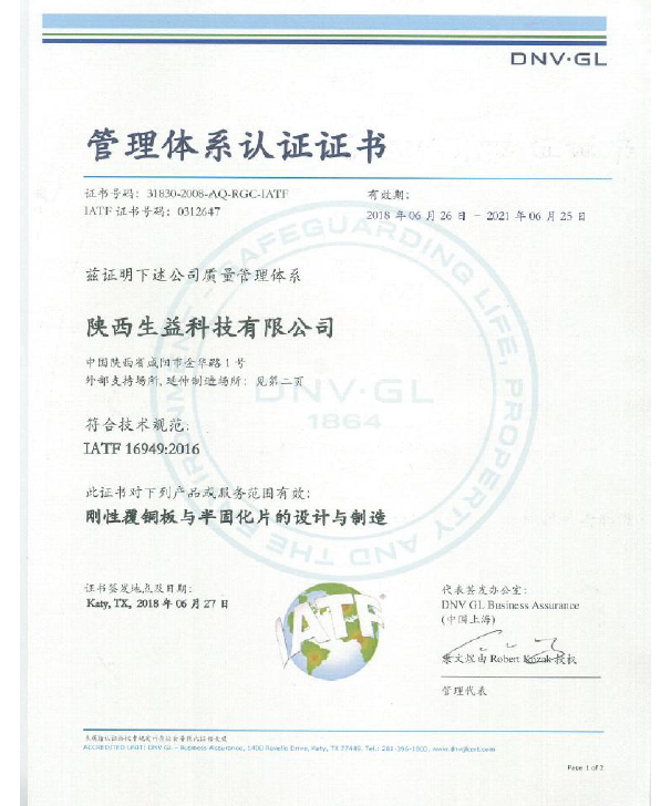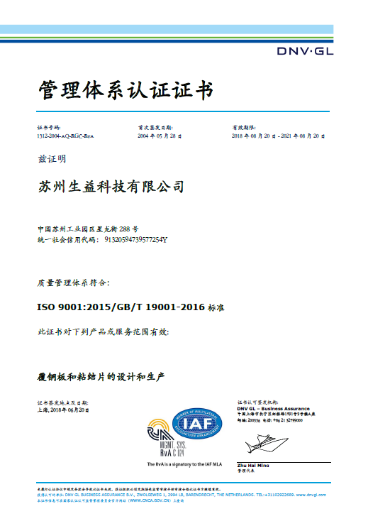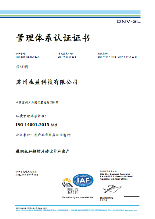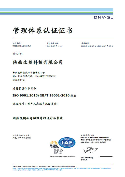 ISO 45001职业健康安全管理体系证书(广东必一运动官网)
