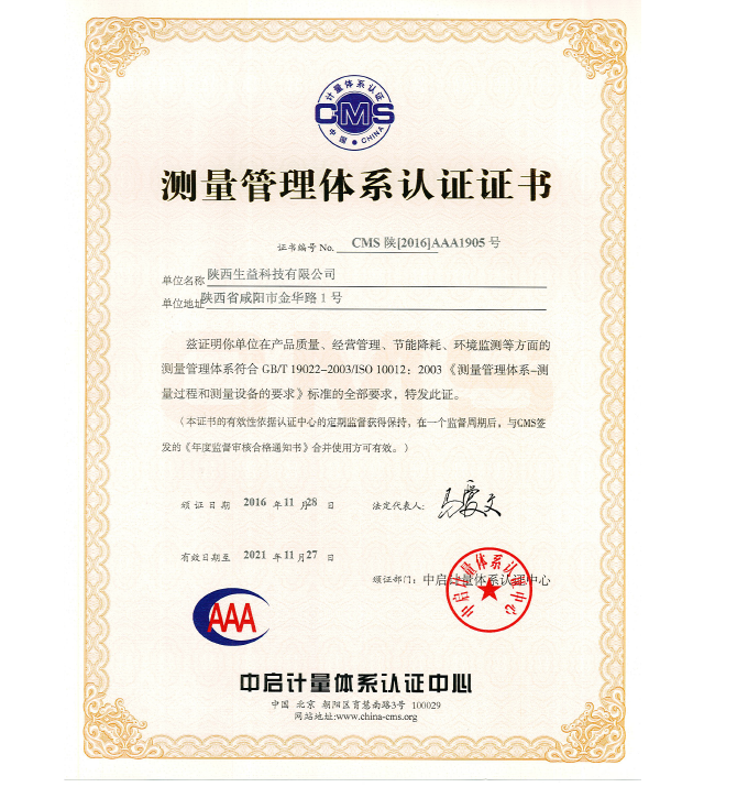 测量管理体系证书(陕西必一运动官网)