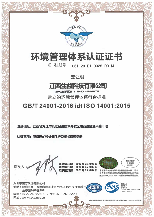 ISO14001证书(江西必一运动官网)
