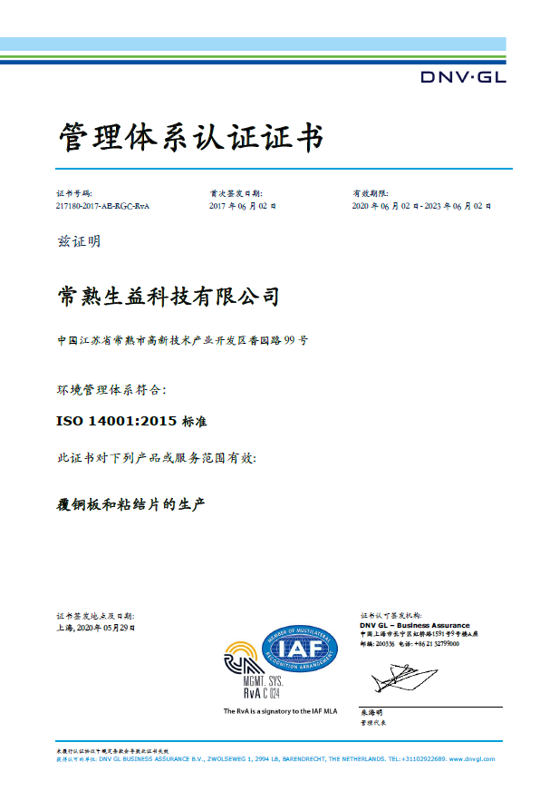 ISO14001证书(常熟必一运动官网)