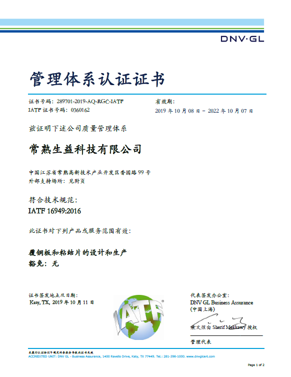 IATF16949证书(常熟必一运动官网)