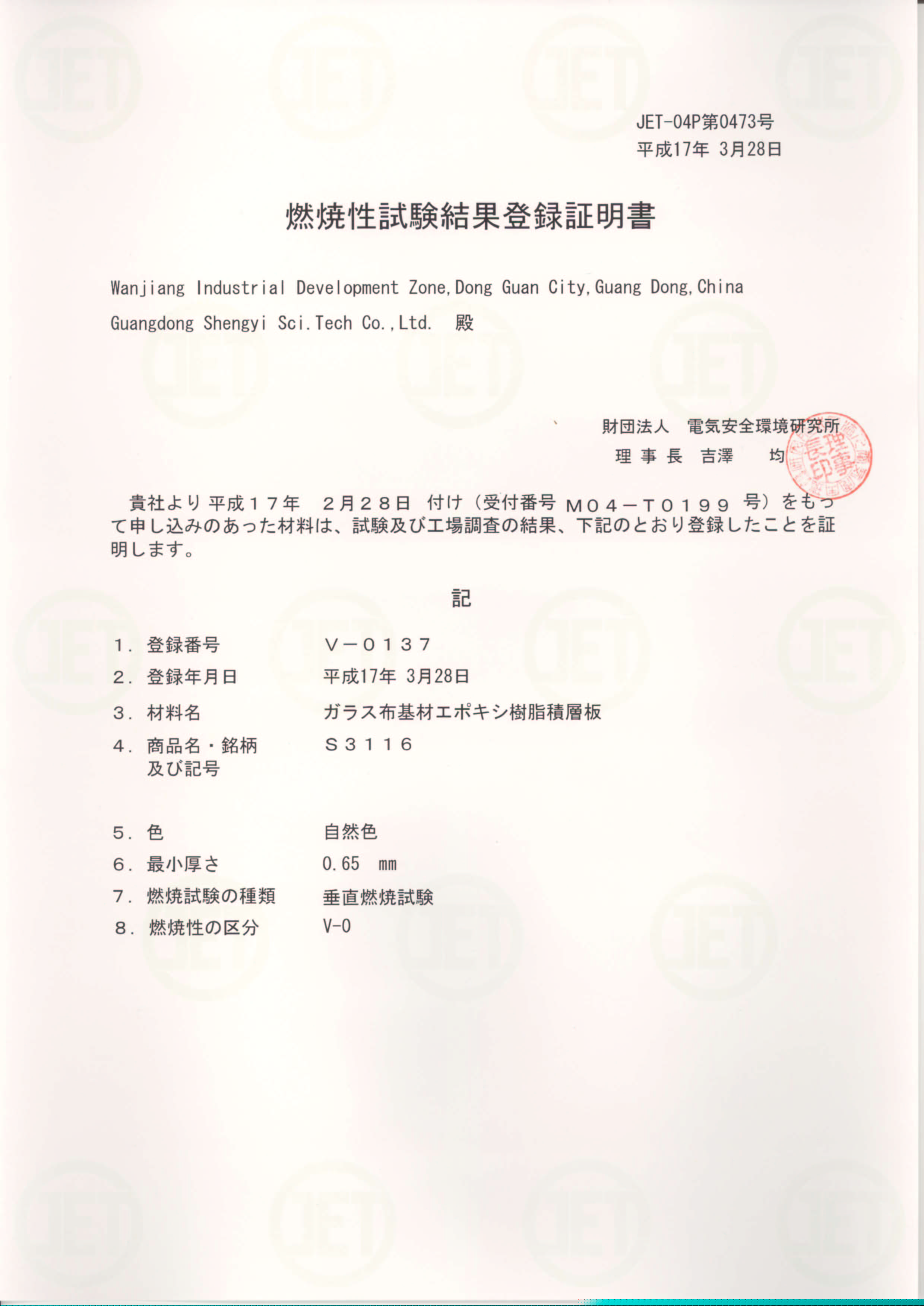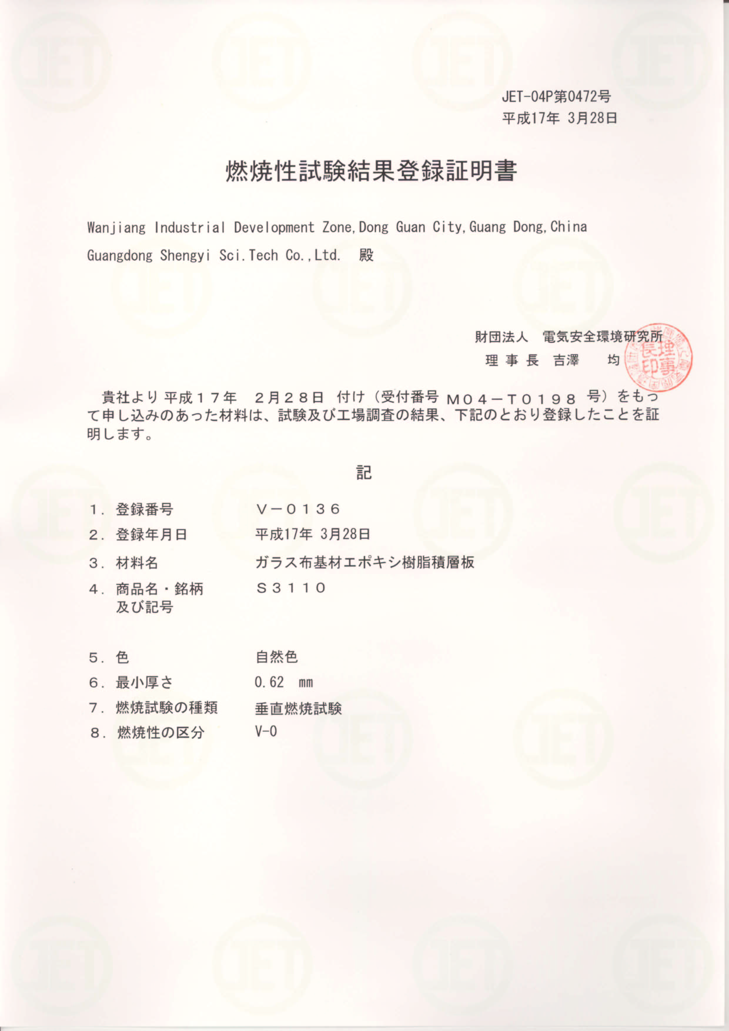 • S3110 JET Certificate