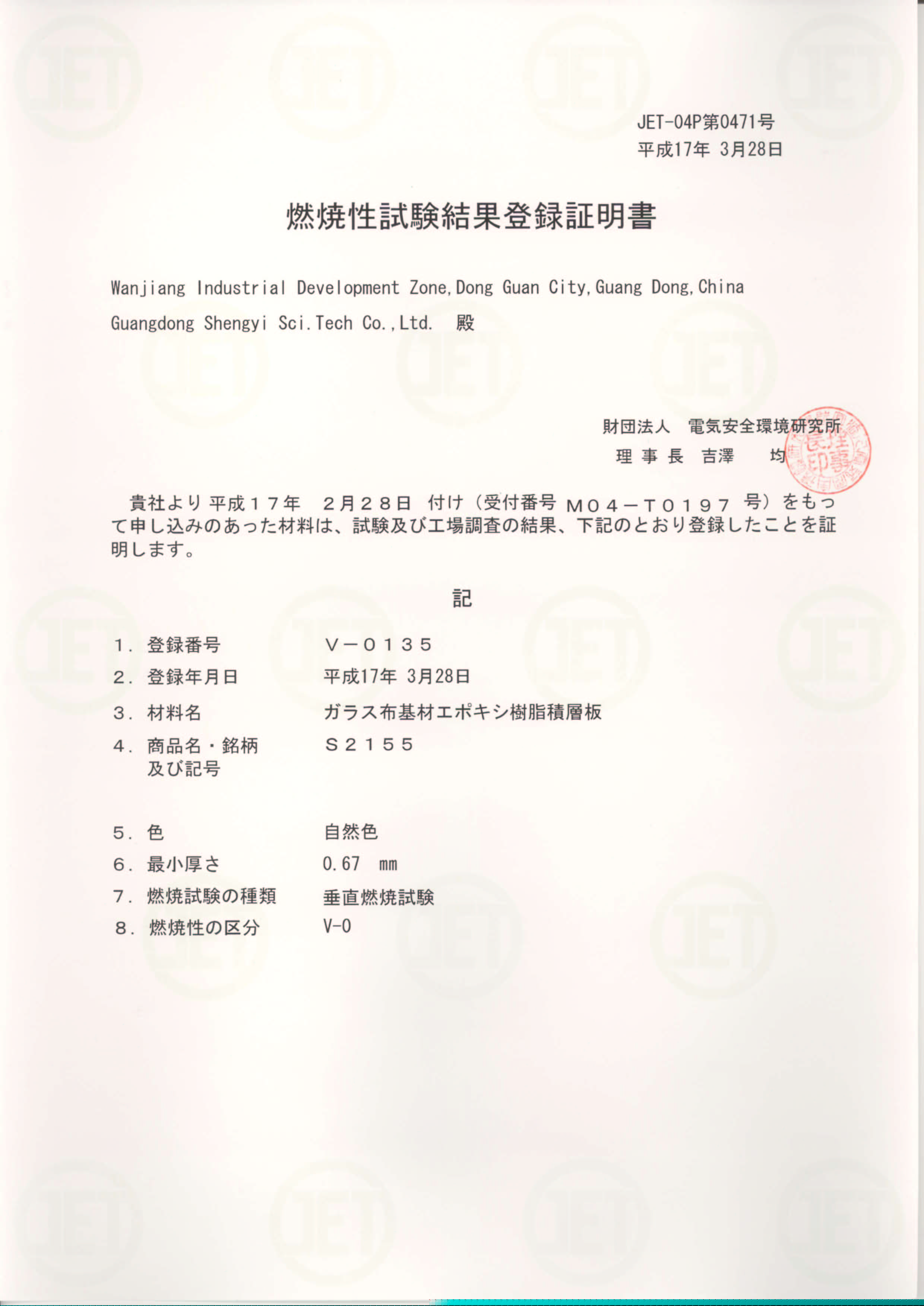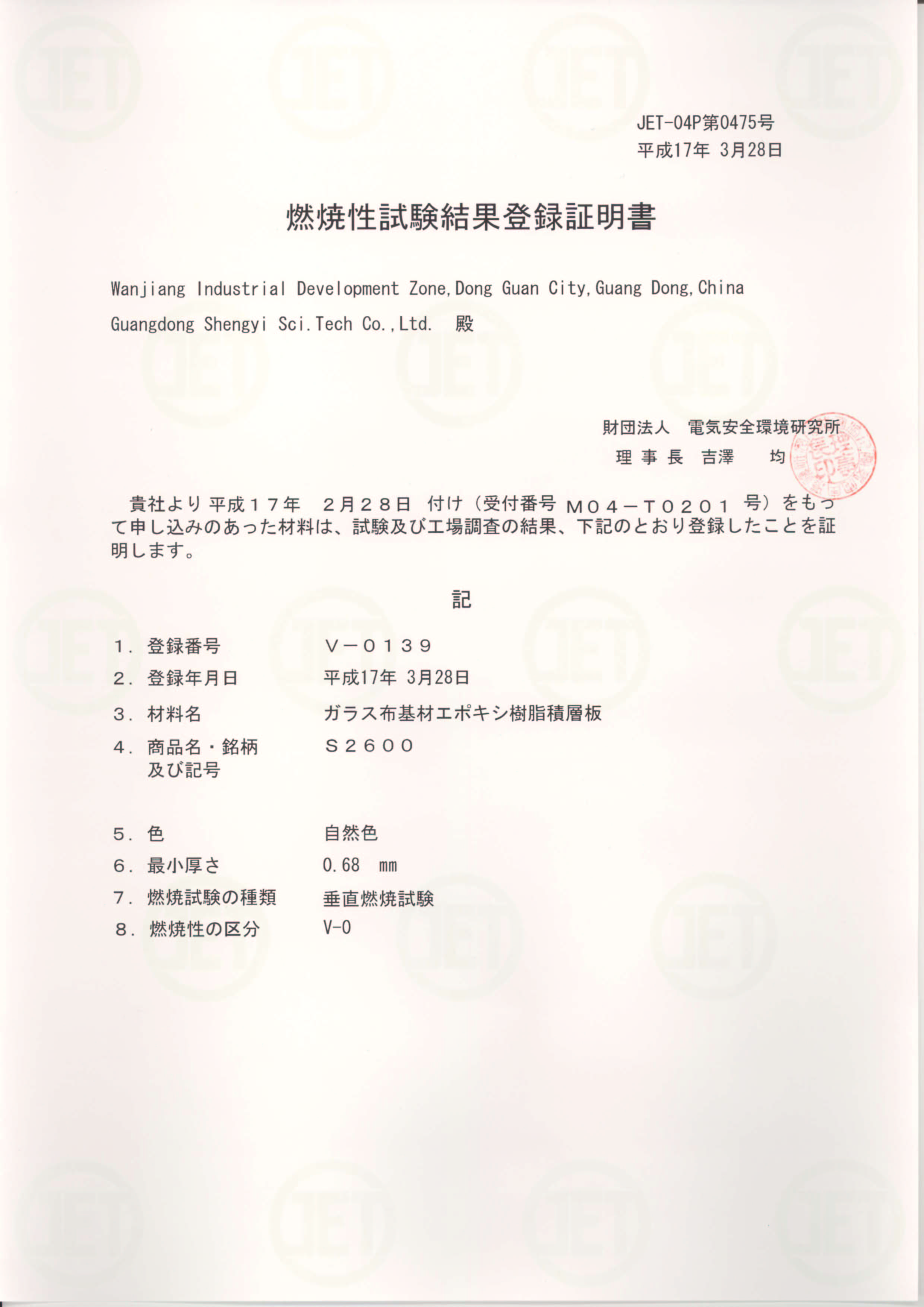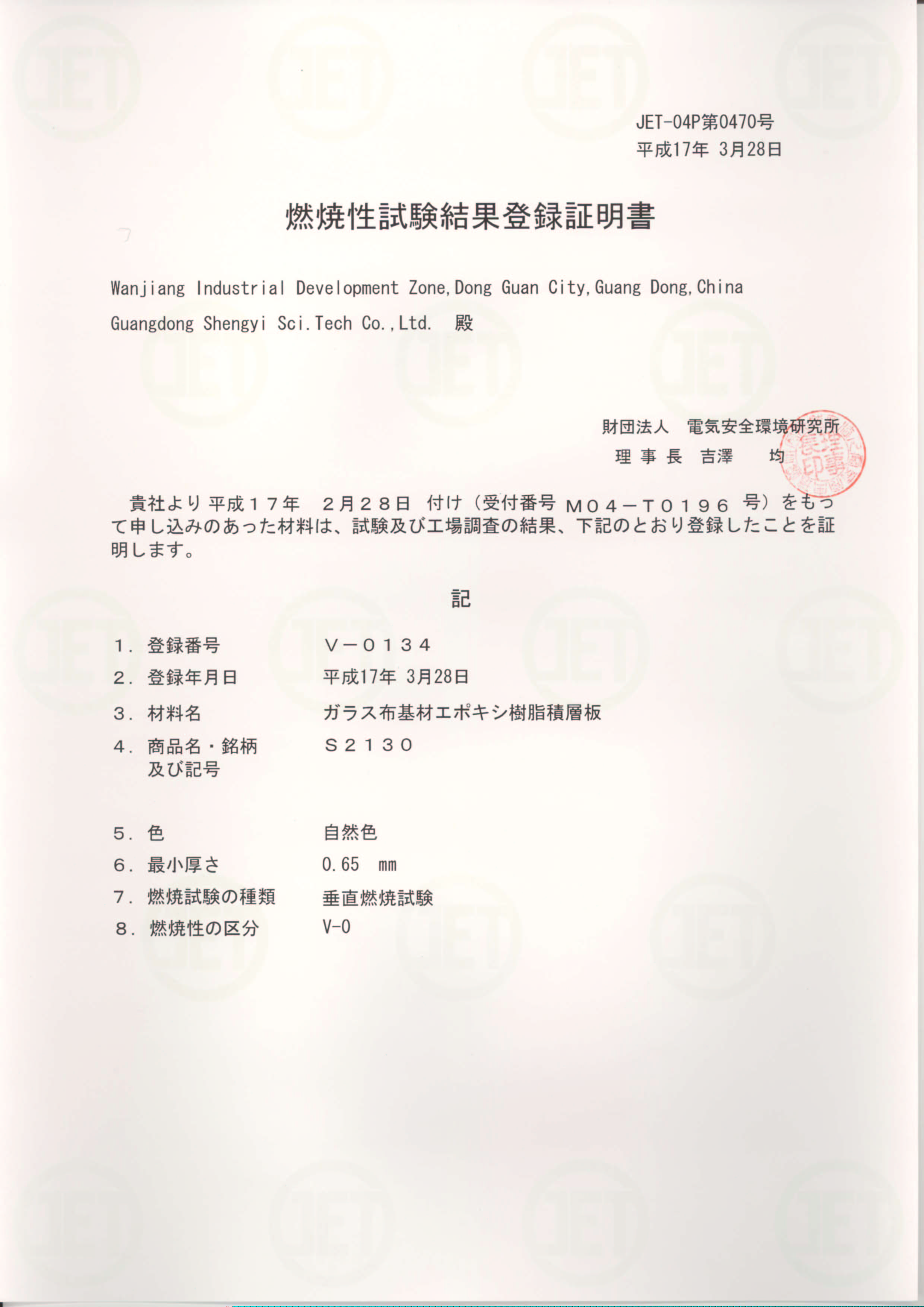 • S2130 JET Certificate